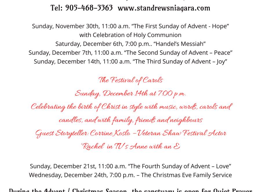 It is a pleasure to welcome you to the website of St. Andrew’s Church, Niagara-on-the-Lake.